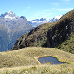 The Routeburn Track is one of the “Great Walks” through Fiordland and Mt Aspiring National Parks. It commences near Glenorchy at the head of Lake Wakatipu, and finishes at the “Divide” on the Milford road. Practically one whole day is spent above the bushline, amongst a dramatic alpine landscape, and the main divide is crossed at Harris Saddle (1280m). In places the track is quite rough, and there are a number of “ups and downs” to extend you. One has to be prepared for cold conditions in the areas above the bushline. This tramp is a classic trip, and the scenery is superb, (given fine weather.) We stay in the DoC huts on the Routeburn track.